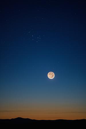 The 2.7% Illuminated Moon Sets with the Pleiades