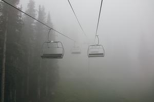 A ski lift ride in the summer is already strange, add fog and it's just errie and wierd.