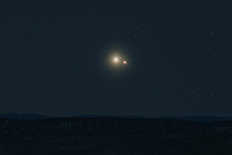 It was beautiful and I’d have loved to have gotten an image with detail of the planets using my planetary camera. Living in the high dry desert, the atmosphere is pretty turbulent and the planets so low on the horizon, I couldn’t pull any details out. So I thought I’d try to show the last few moments as the planets were setting.