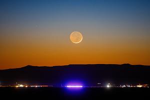 The 2.2% moon and a police car beneath it.